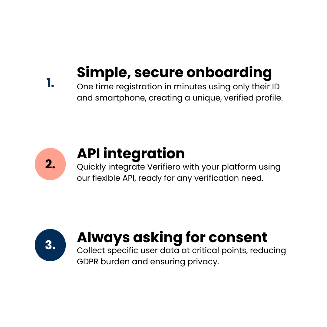Get the informaiton you need while showing your customers you care by only collecting the essentials. Verifiero’s privacy-first approach ensures trust and transparency at every step.